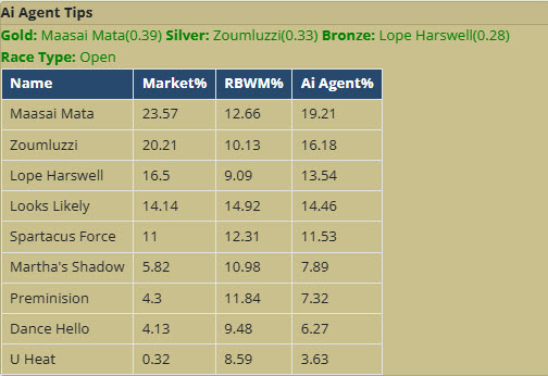 (This view is a few minutes after the race, that is when the winner column is filled in.) All other columns are as before the race.